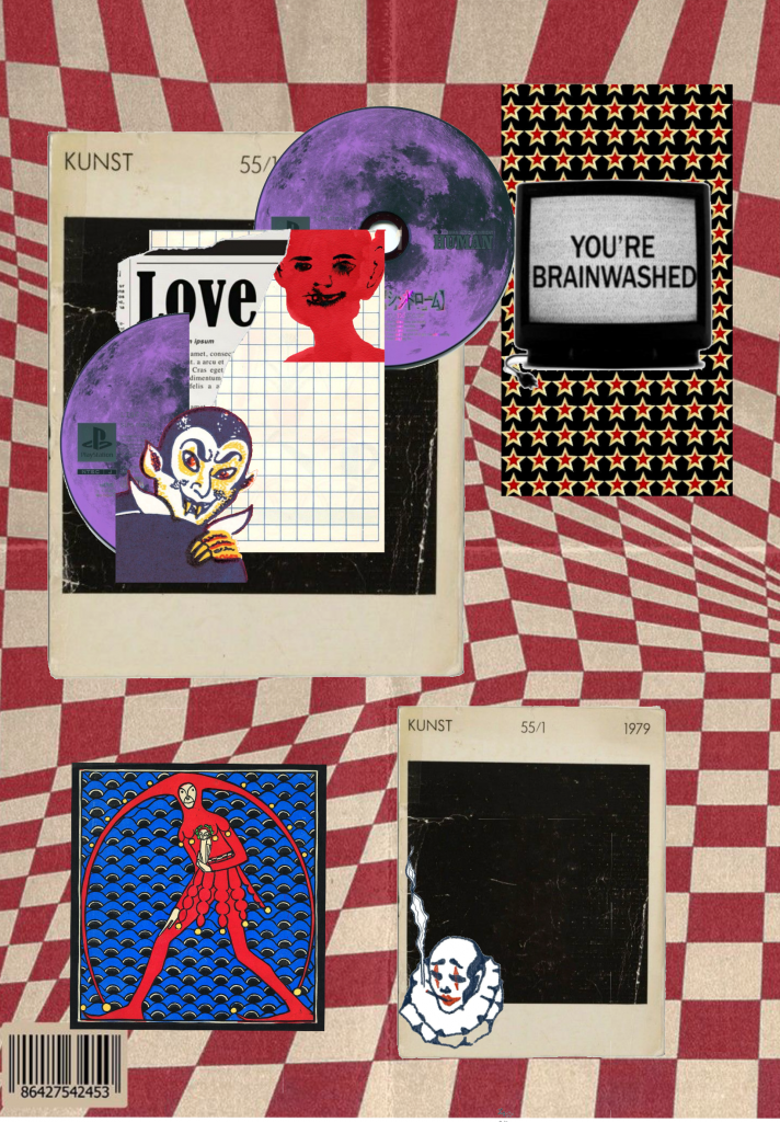 I didn’t want to set a specific visual style for myself in the first place, so I decided to start by making some collages. Here are some I created to help develop a clearer direction.